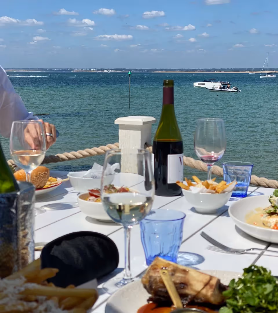 Set sail on a 7-hour charter from Poole Quay towards the tranquil Shell Bay, where an enchanting dinner experience awaits you at the acclaimed Shell Bay Restaurant, known for its exceptional seaside dining under the stars.
